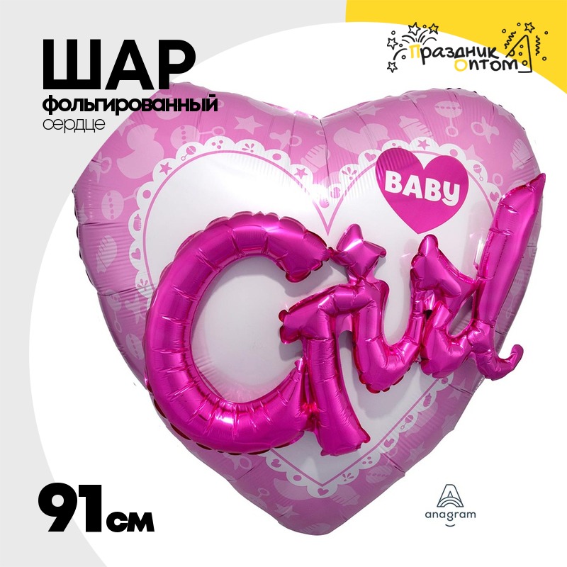 Шар Фольгированный Baby Girl сердце розовое (Розовый)