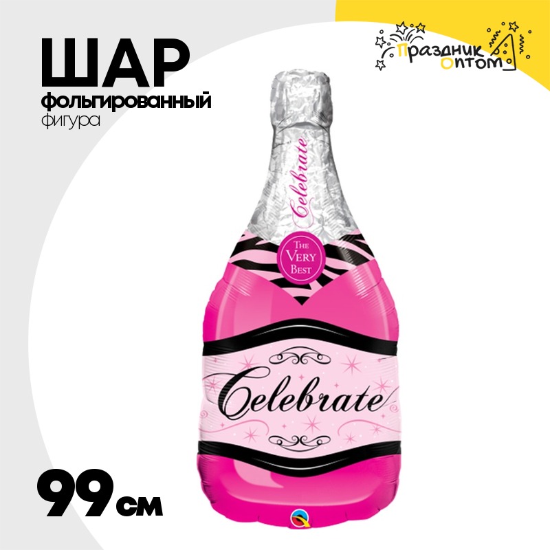Шар Фольгированный Бутылка шампанского розовая (Розовый)