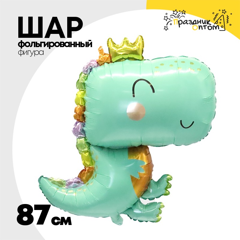 Шар Фольгированный Динозаврик в короне (Мятный)