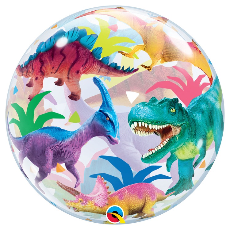 Шар Фольгированный Динозавры разноцветные Bubble Прозрачный (Ассорти)