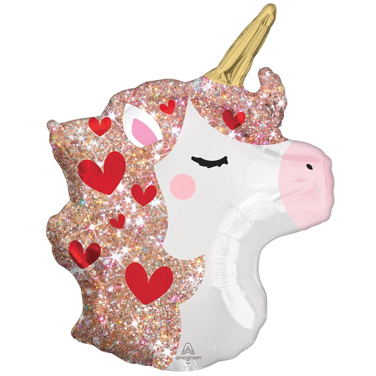 Шар Фольгированный Единорог Искры Сердца (Белый)