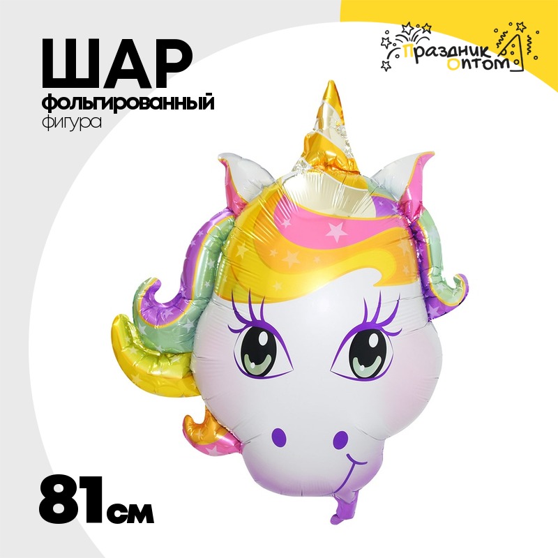 Шар Фольгированный Единорог волшебный голова (Ассорти)