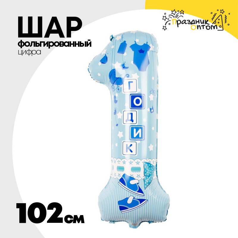 Шар Фольгированный Цифра 1 ГОДИК Малыш (Голубой)