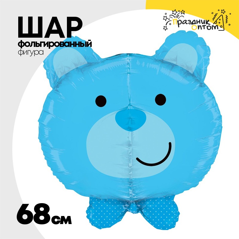 Шар Фольгированный Голова Медвежонка мальчика (Голубой)