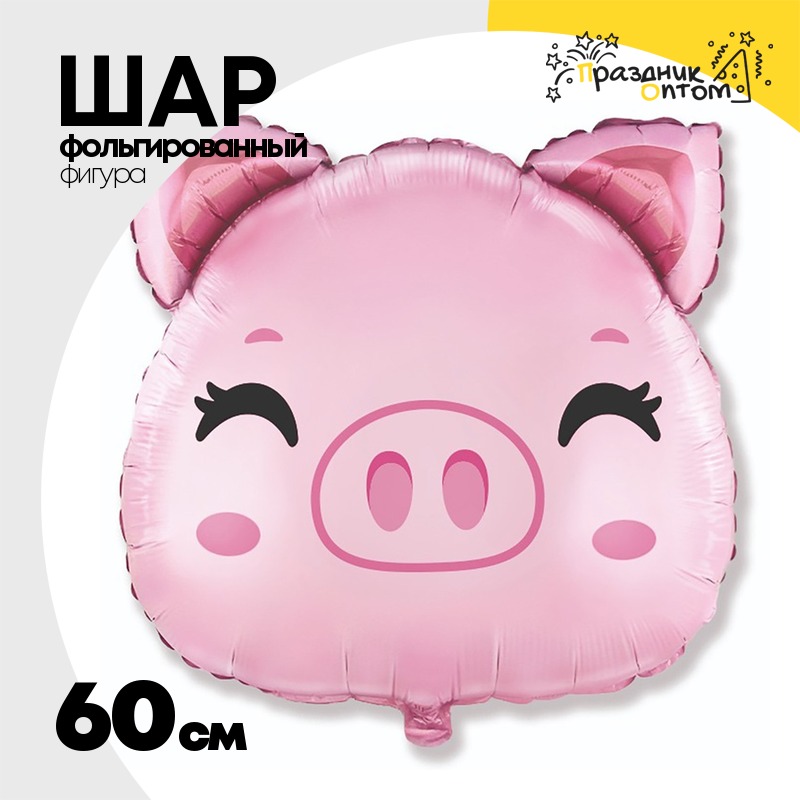 Шар Фольгированный Голова Поросенка (Розовый)