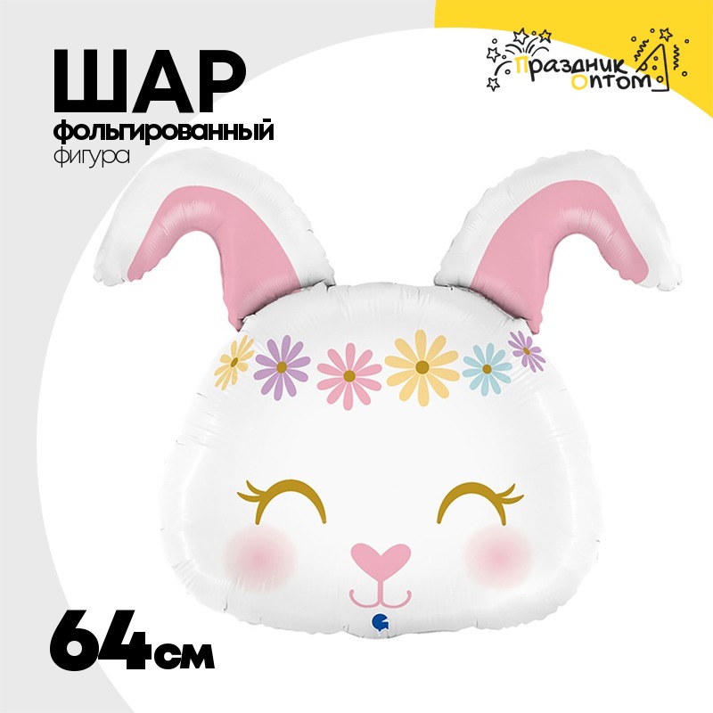 Шар Фольгированный Голова Зайки (Белый)