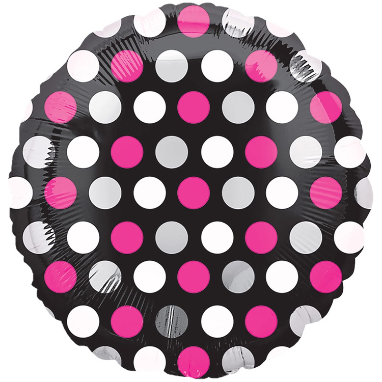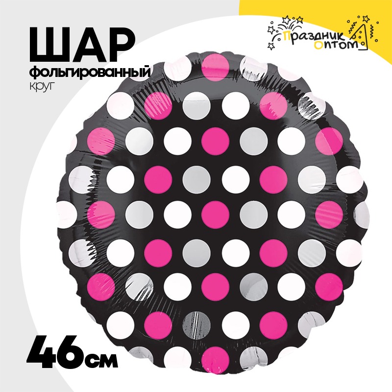 Шар Фольгированный Горошек бело-розовый на черном (Ассорти)