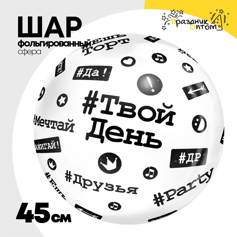 Шар Фольгированный Хештеги Bubble Прозрачный (Черный)