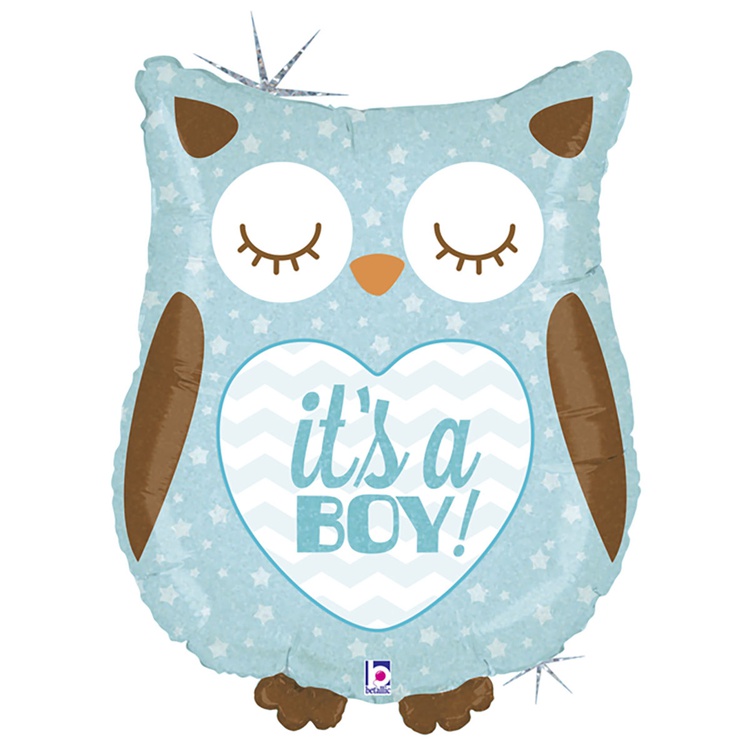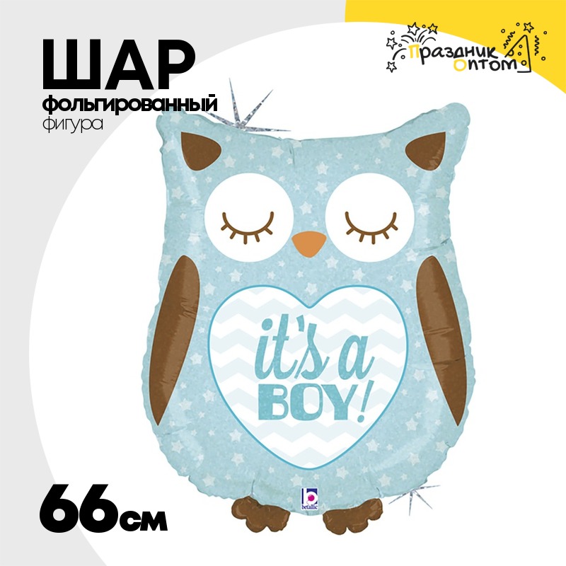 Шар Фольгированный IT'S A BOY Сова голубая блеск (Голубой)