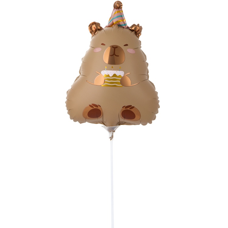Шар Фольгированный Капибара в колпаке с тортом (Коричневый)
