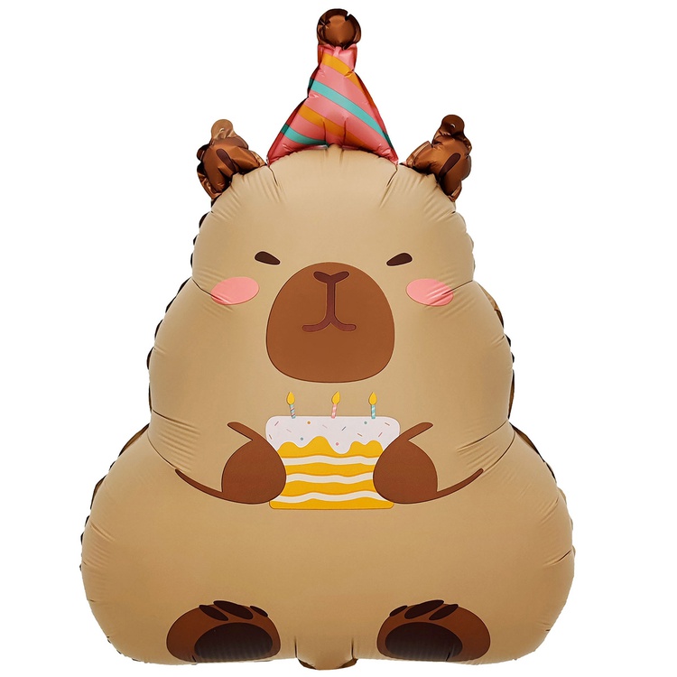 Шар Фольгированный Капибара в колпаке с тортом (Коричневый)