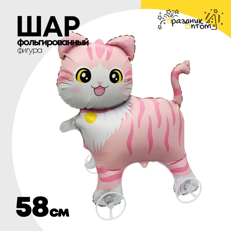 Шар Фольгированный Каталка Котик девочка (Розовый)