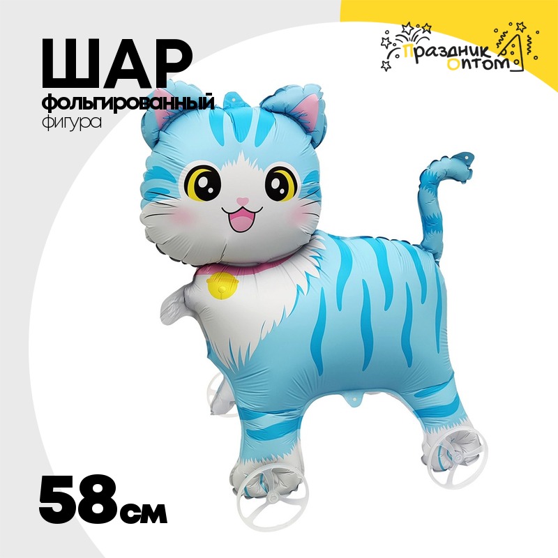 Шар Фольгированный Каталка Котик мальчик (Голубой)