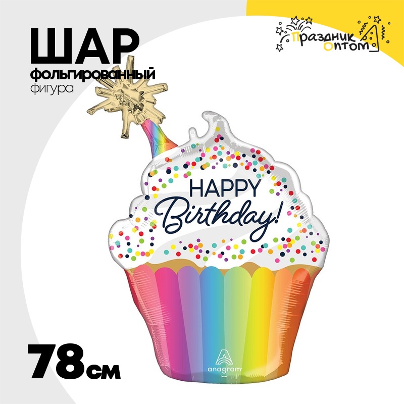 Шар Фольгированный Кекс конфетти радужное (Ассорти)