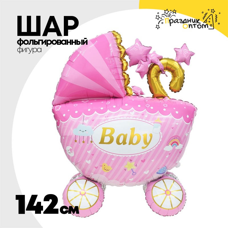 Шар Фольгированный Коляска детская розовая 3D 3D (Розовый)
