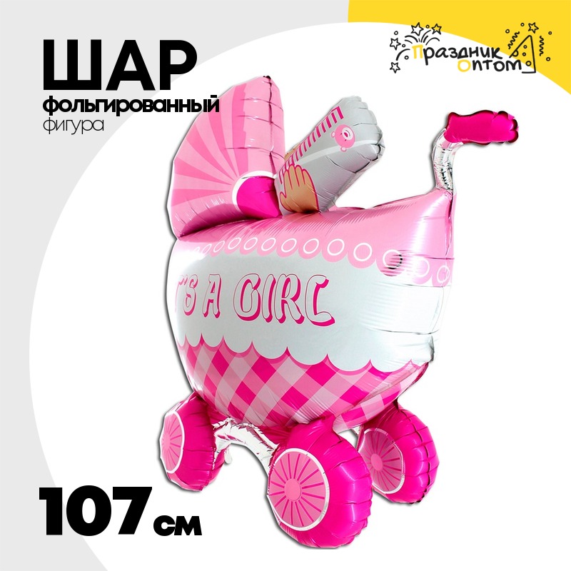 Шар Фольгированный Коляска детская розовая (Ассорти)