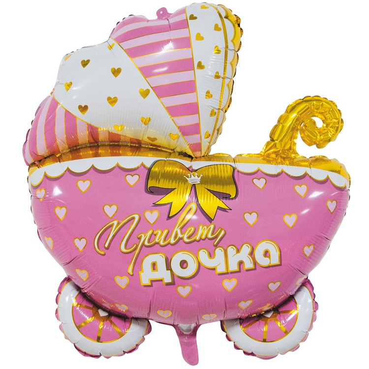 Шар Фольгированный Коляска ПРИВЕТ ДОЧКА (Розовый)