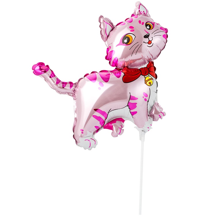 Шар Фольгированный Кошечка с бантом розовая (Фуксия)