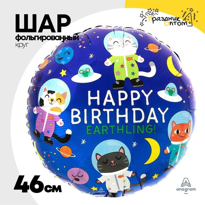 Шар Фольгированный Кошки-космонавты (Ассорти)