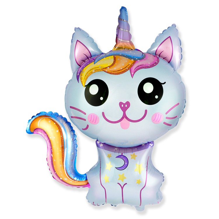 Шар Фольгированный Кот-Единорог голубой (Голубой)