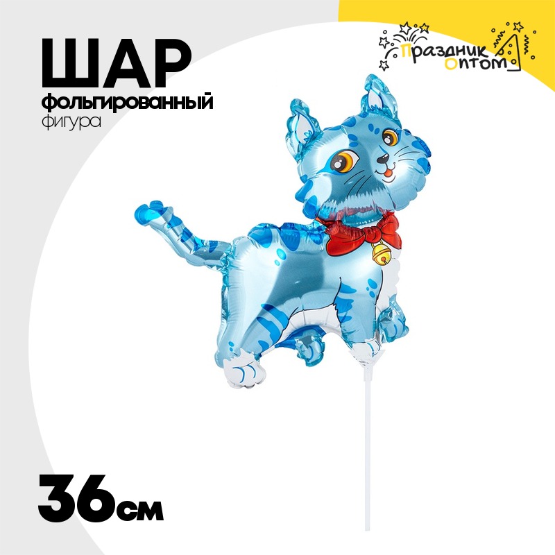 Шар Фольгированный Котик с бантом (Голубой)