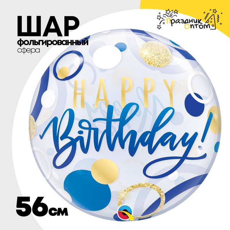 Шар Фольгированный Круги сине-золотые Bubble Прозрачный (Голубой)