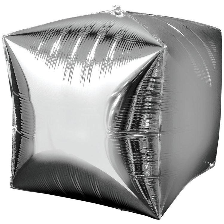 Шар фольгированный Куб 3D 38 см (Серебряный)