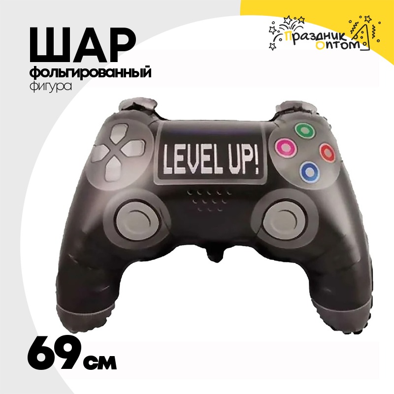Шар Фольгированный LEVEL UP Джойстик игровой (Черный)