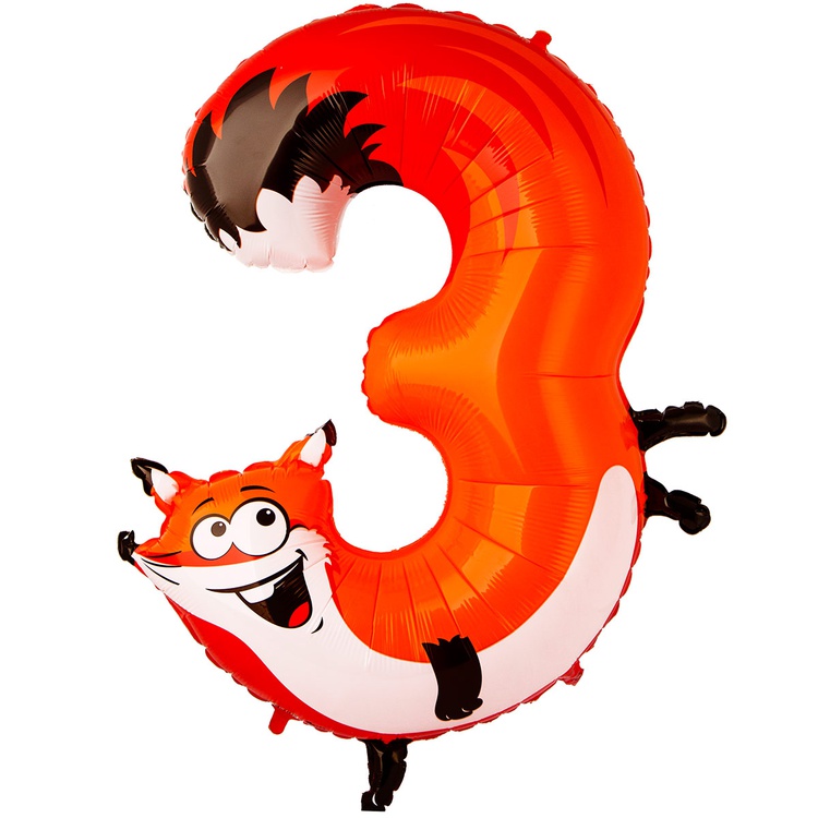 Шар Фольгированный Цифра 3 Лиса (Оранжевый)