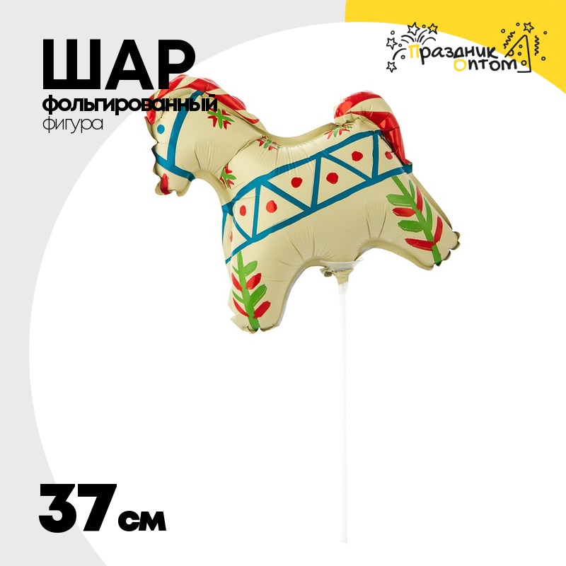 Шар Фольгированный Лошадка Русский узор (Белый)