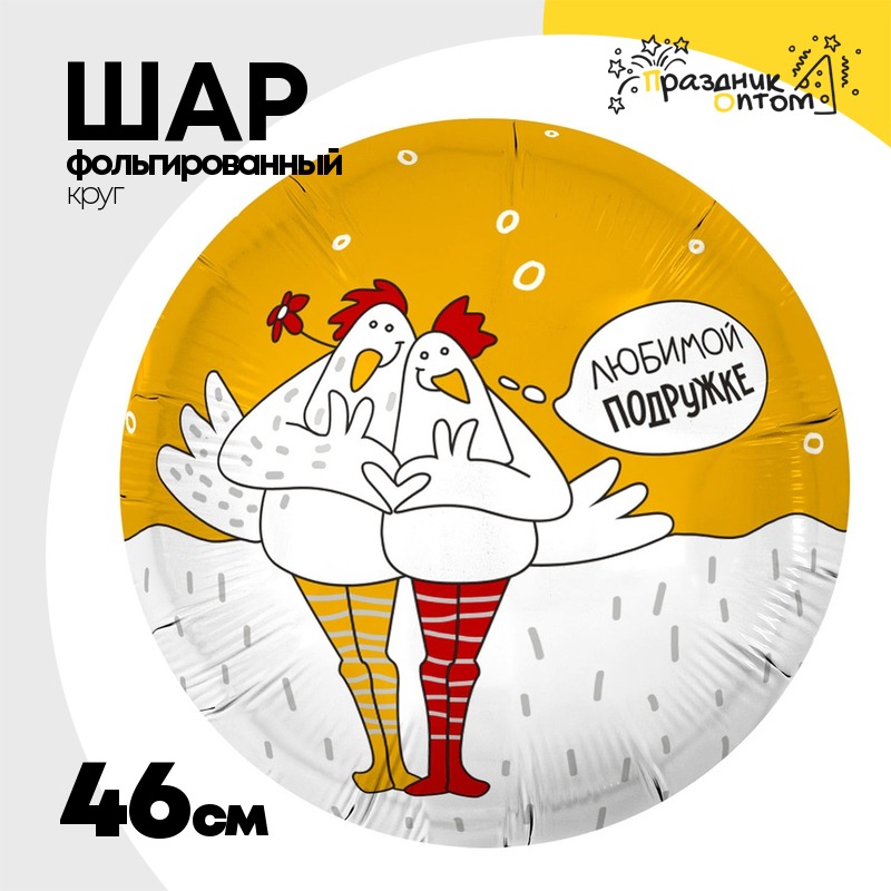 Шар Фольгированный ЛЮБИМОЙ ПОДРУЖКЕ Курочки (Желтый)
