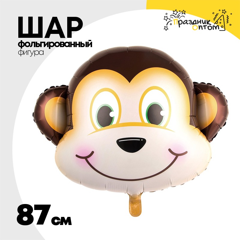 Шар Фольгированный Мартышка голова большая (Коричневый)