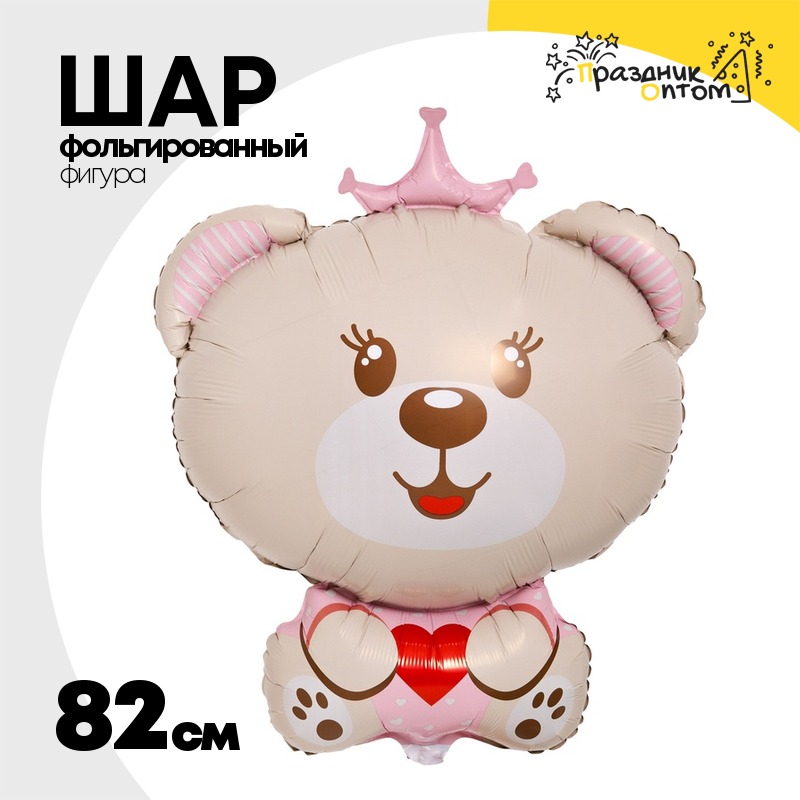 Шар Фольгированный Медведица принцесса с сердечком (Ассорти)