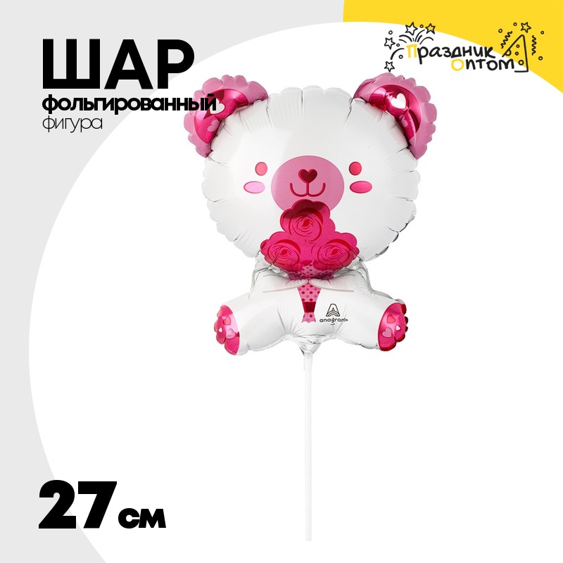 Шар Фольгированный Мишка белый с цветами (Белый)