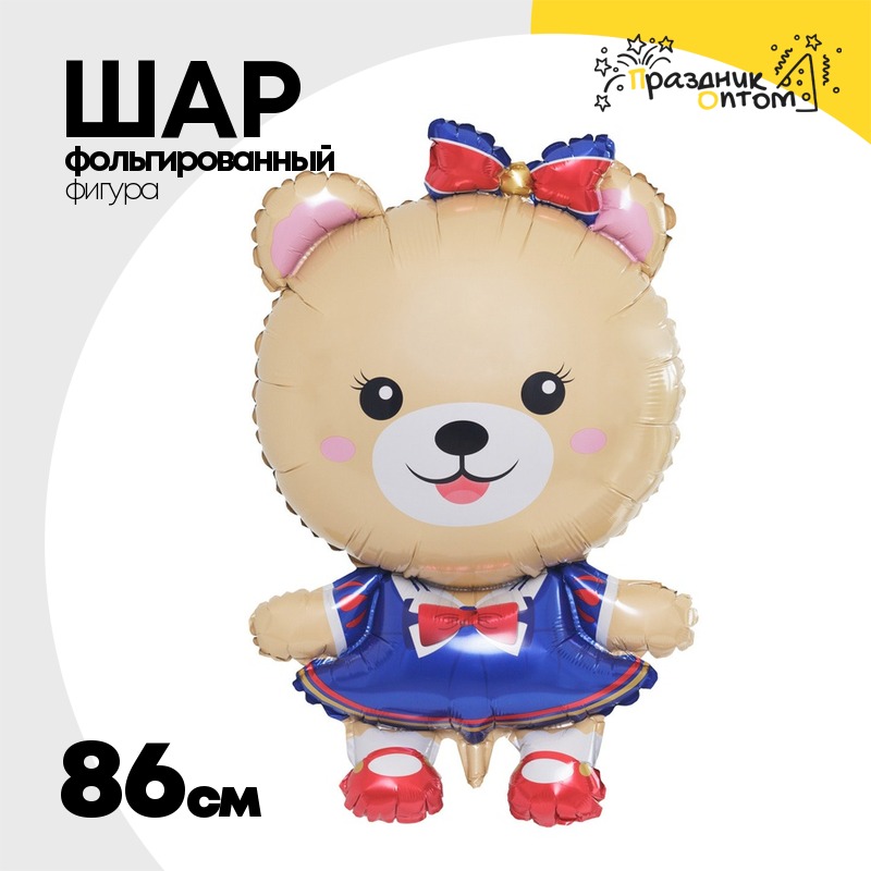 Шар Фольгированный Мишка бежевый с бантом (Бежевый)