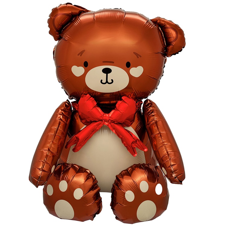Шар Фольгированный Мишка коричневый бант красн (Коричневый)