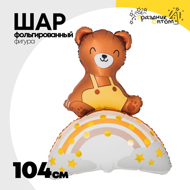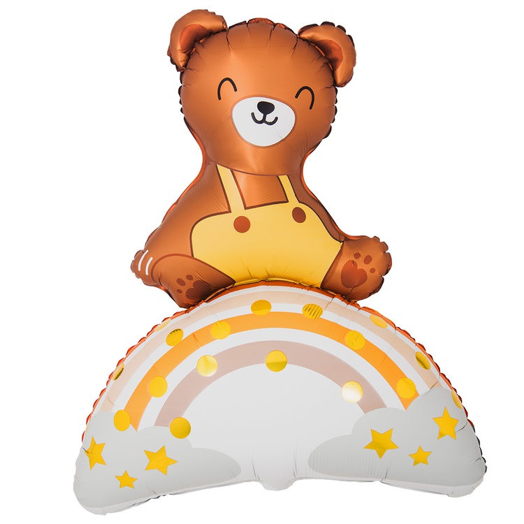 Шар Фольгированный Мишка на радуге (Бежевый)