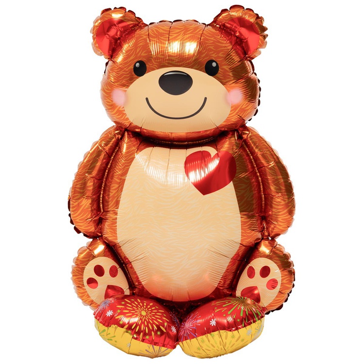 Шар Фольгированный Мишка с красным сердцем (Коричневый)