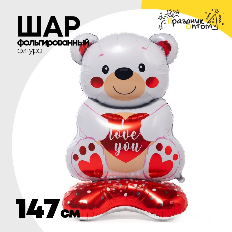 Шар Фольгированный Мишка с сердцем белый (Белый)