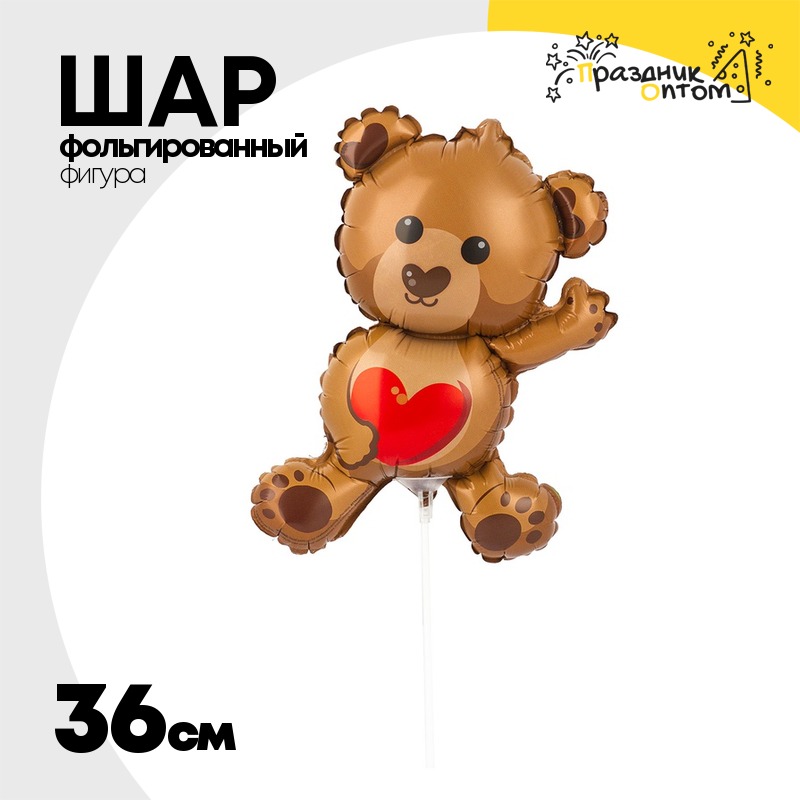 Шар Фольгированный Мишка с сердцем (Коричневый)
