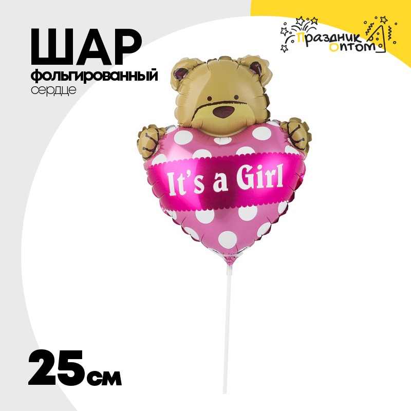 Шар Фольгированный Мишка с сердцем розовым (Ассорти)