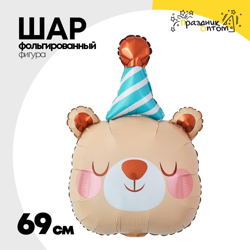 Шар Фольгированный Мишка спящий в колпаке (Бежевый)