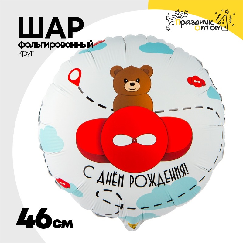 Шар Фольгированный Мишка в самолете красном (Ассорти)