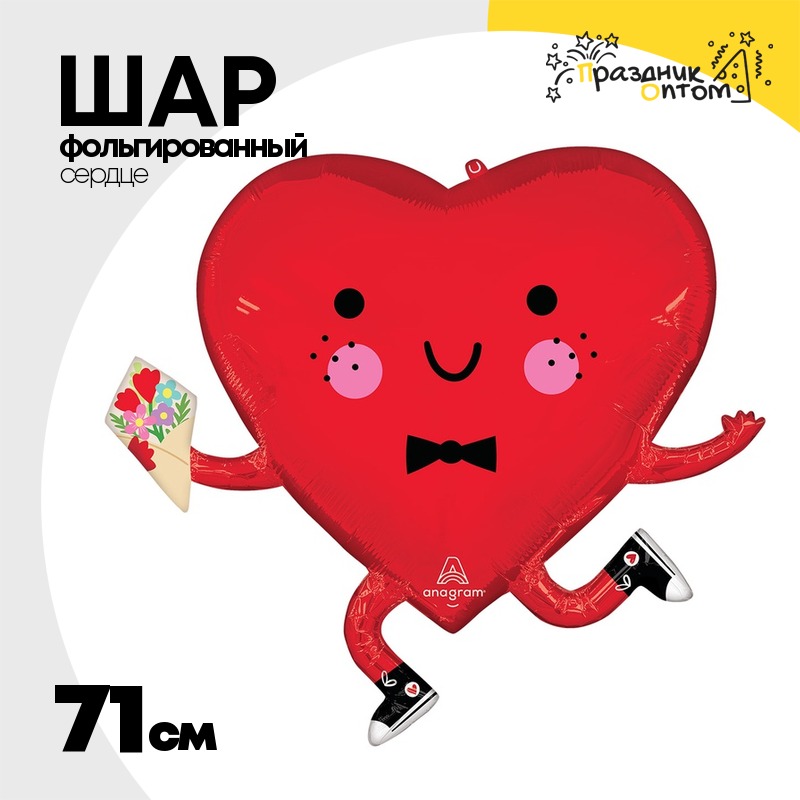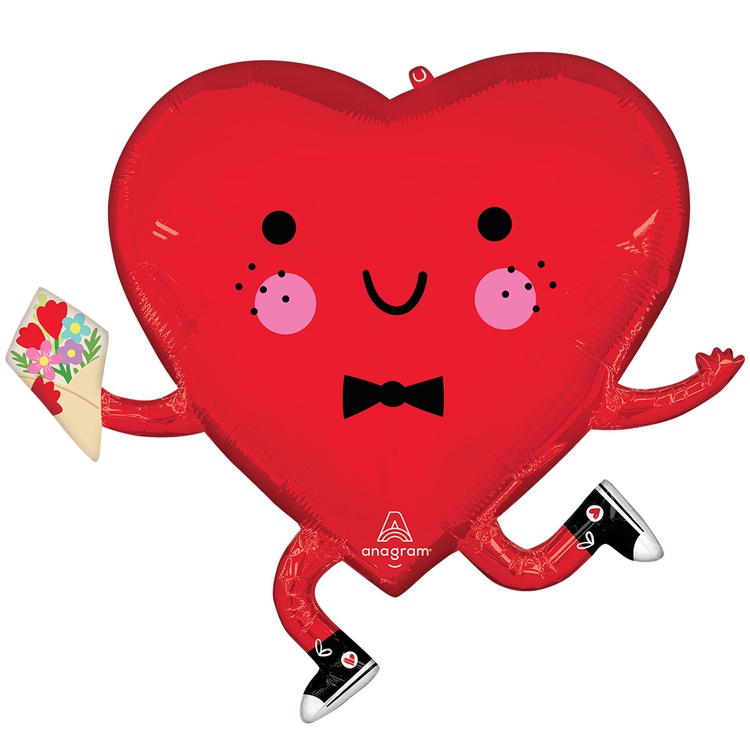 Шар Фольгированный Мистер Сердце с букетом (Красный)