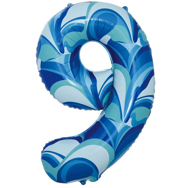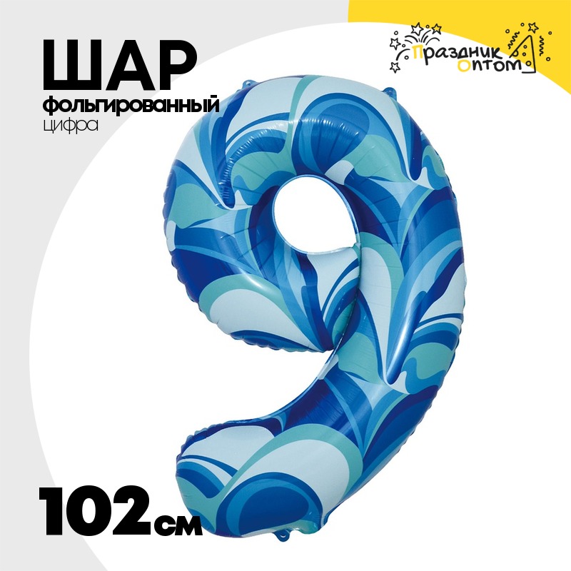 Шар Фольгированный Цифра 9 Мрамор голубой (Голубой)