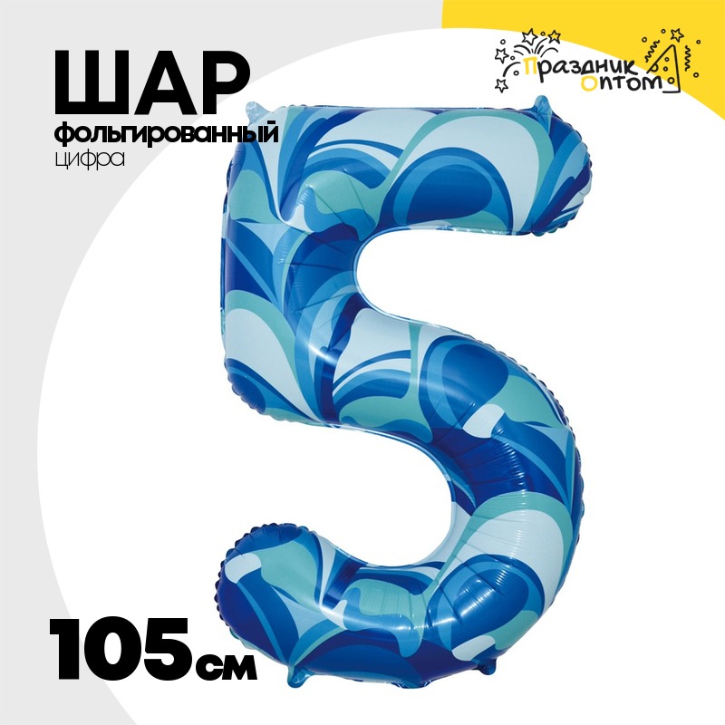Шар Фольгированный Цифра 5 Мрамор голубой (Голубой)