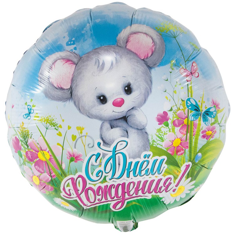 Шар Фольгированный Мышонок в цветах (Ассорти)