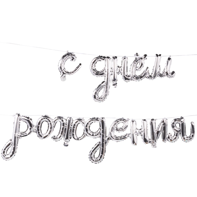 Шар фольгированный Надпись "С днем рождения" 250 см (Серебряный)