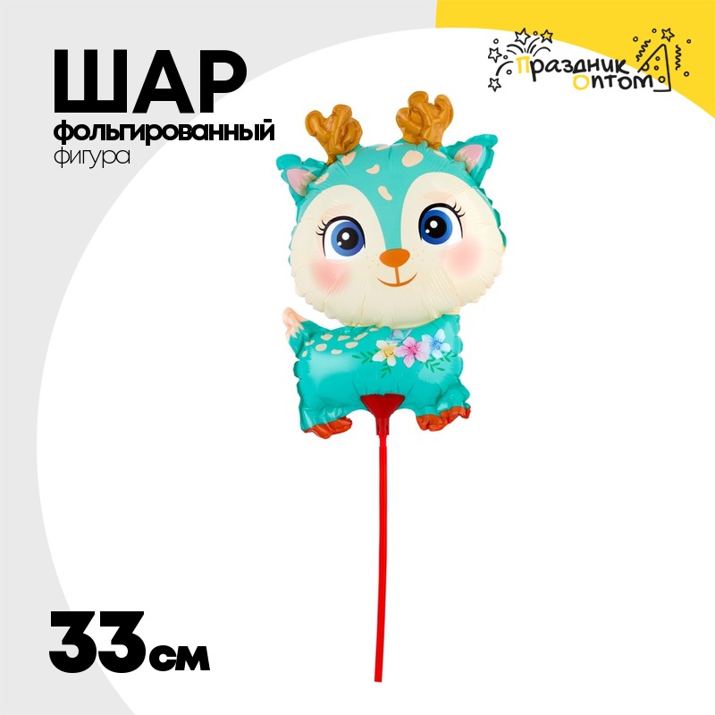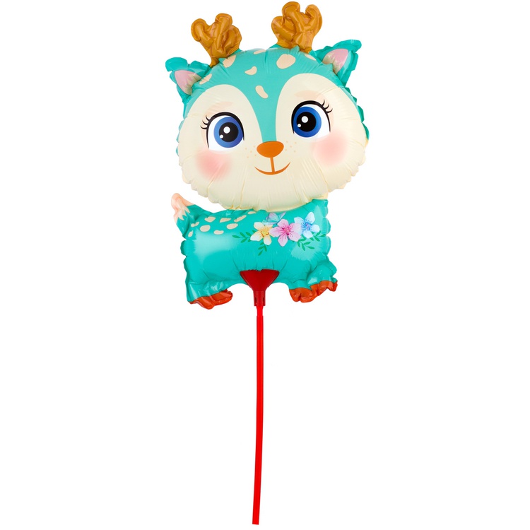 Шар Фольгированный Олень бирюзовый на палочке (Бирюзовый)