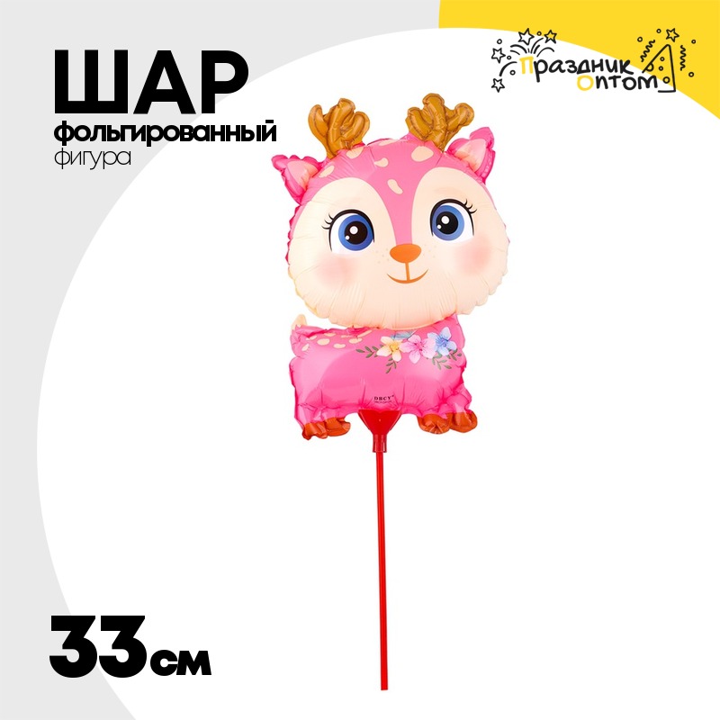 Шар Фольгированный Олень розовый на палочке (Розовый)